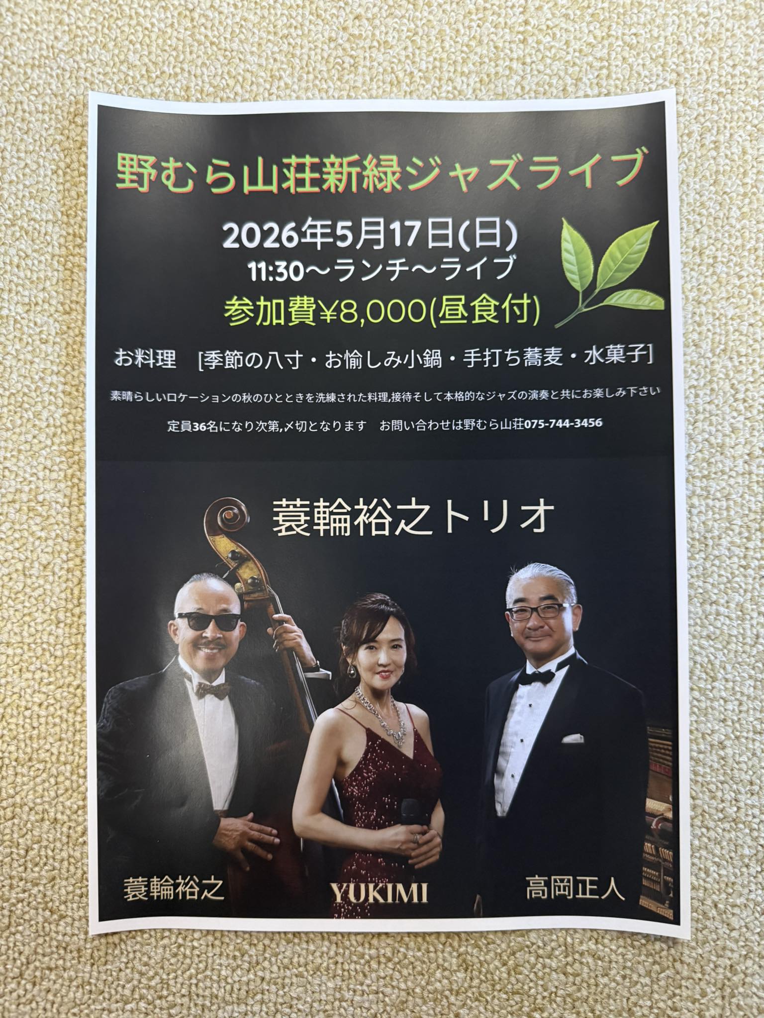 この様な状況を緩和するため、2026年は5月に新緑ジャズライブ♬